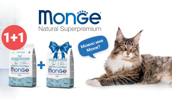Сухой корм для кошек Monge Cat Monoprotein с форелью 400 г 1+1