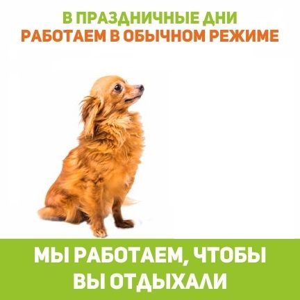 Уважаемые покупатели! С 9 по 11 мая все розничные магазины работают в обычном режиме. Call-центр работает с 9:00 до 21:00 Служба доставки с 10:00 до 24:00.
